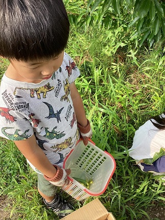 人間関係・社会性 はたけへ、いこう! 2025-07-312025-07-31 投稿者 : スタッフ 01 はたけに、たくさんの野菜ができていたのでみんなで手袋はいて収穫しました みんなの後ろ姿がステキなショットです♪ スタッフ 01
