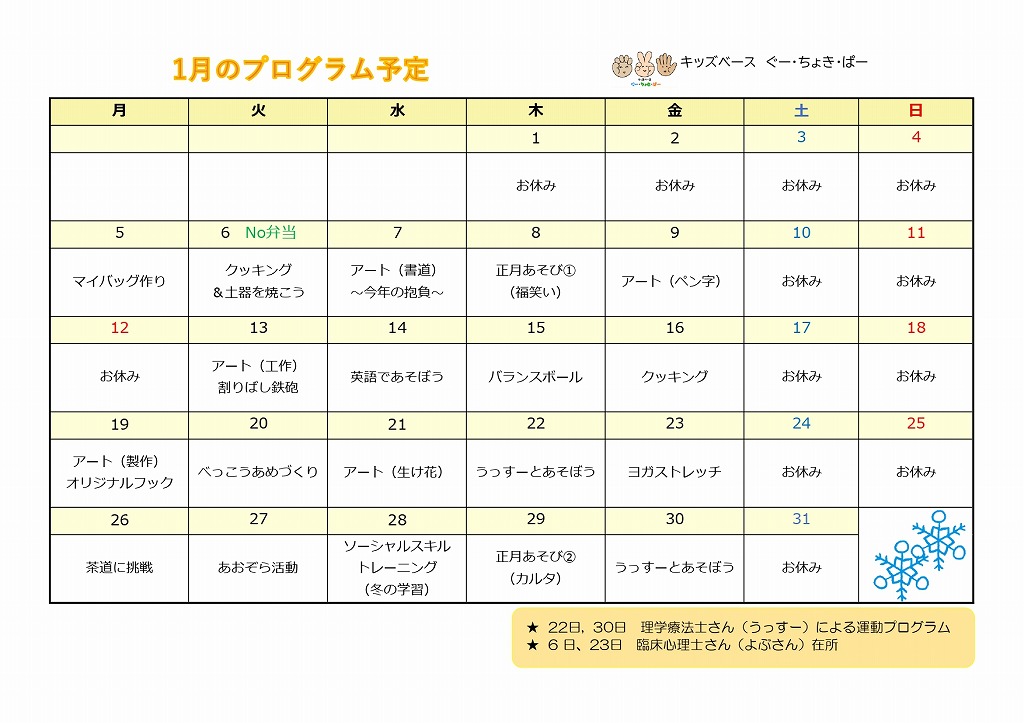 1月のプログラム