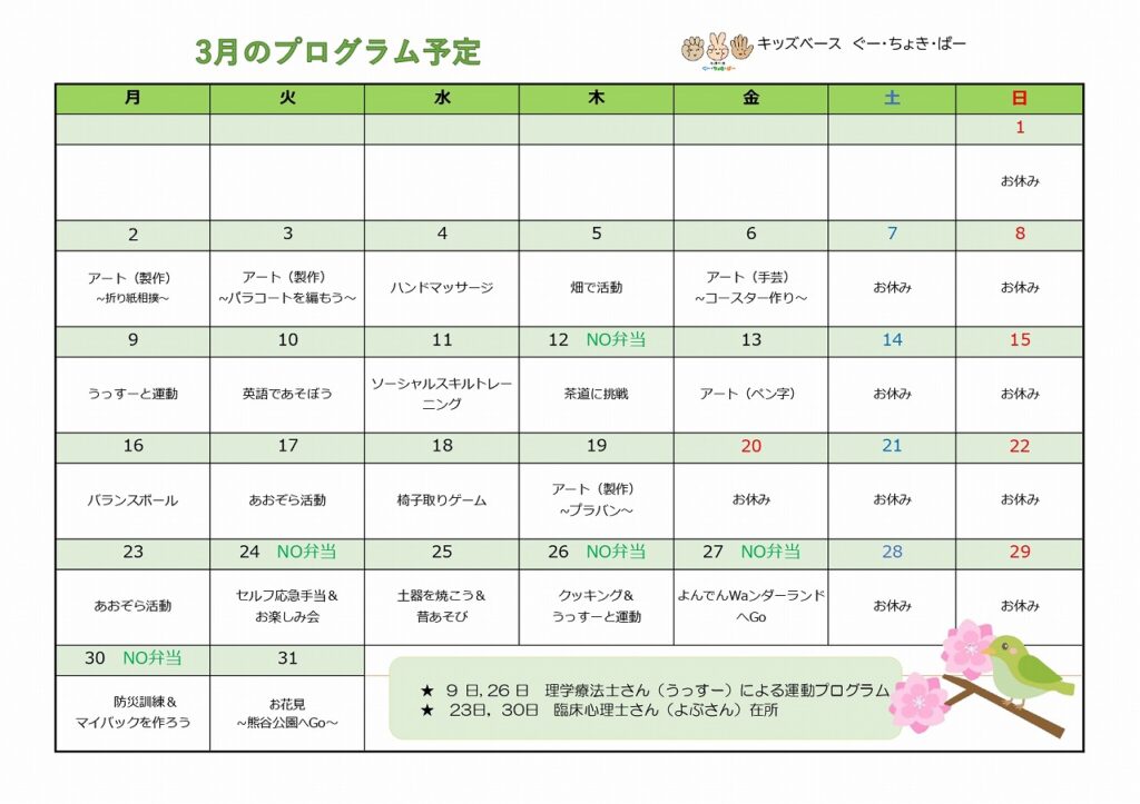 3月のプログラム